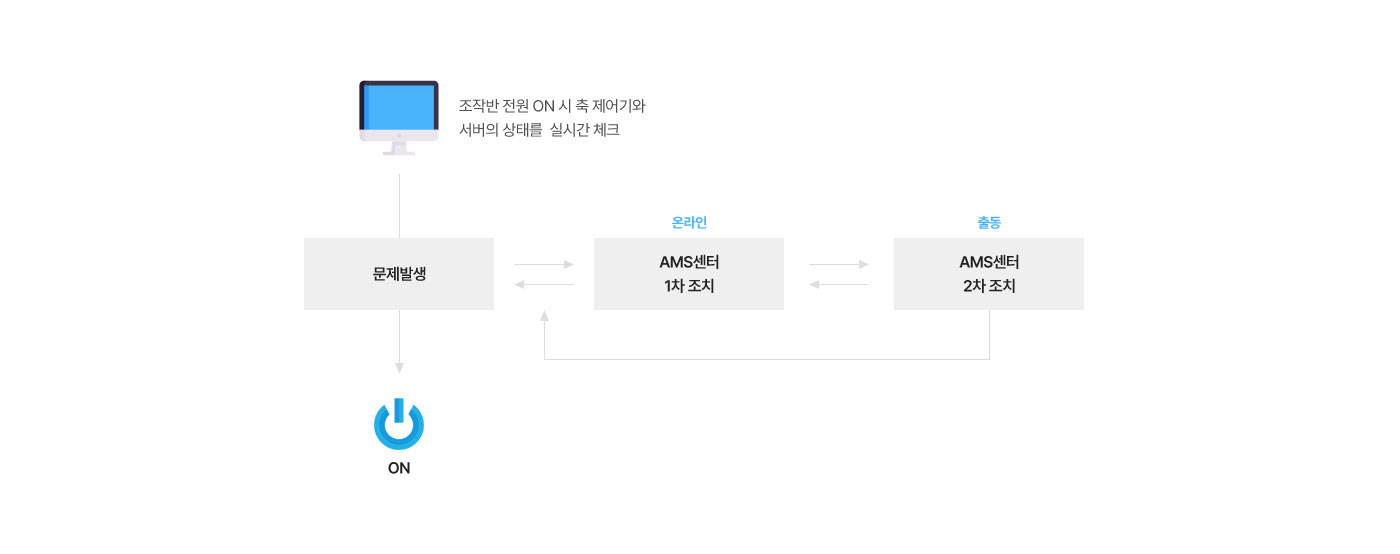 문제의 원인 파악과 함께 조치사항 공유 (현지업체, AMS 센터, 본사)